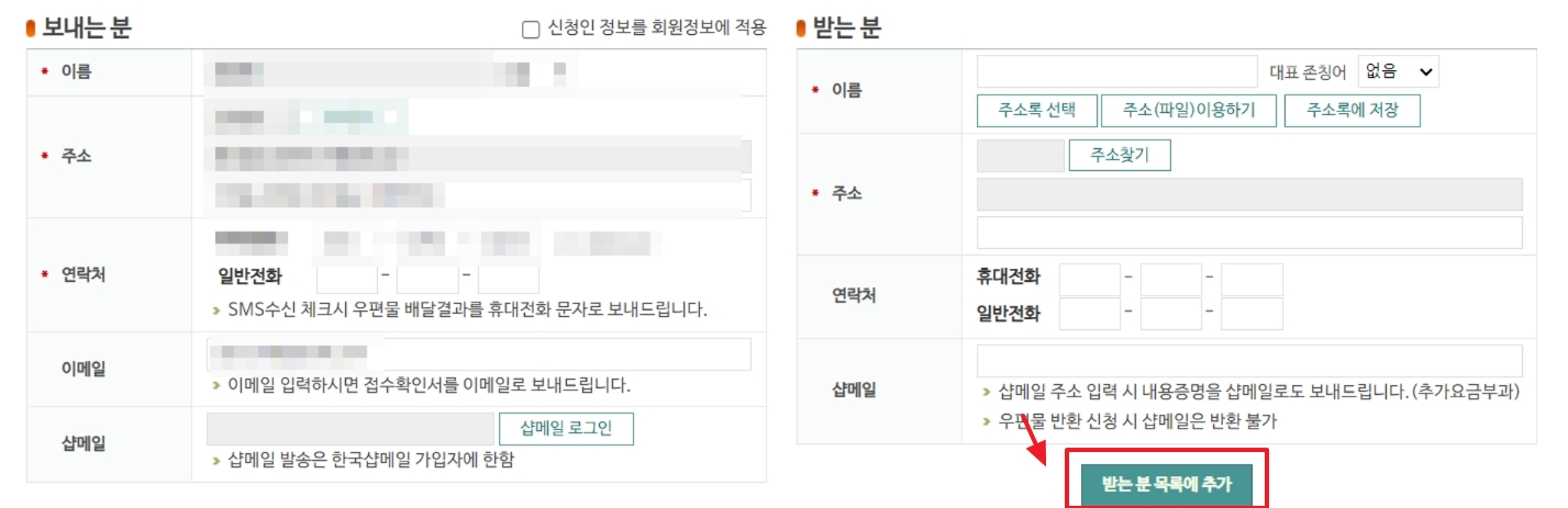 03. 배달증명 선택 후 보내는 사람, 받는 사람 정보 입력하기