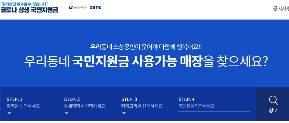 지역별로 재난지원금을 쓸 수 있는 가맹점을